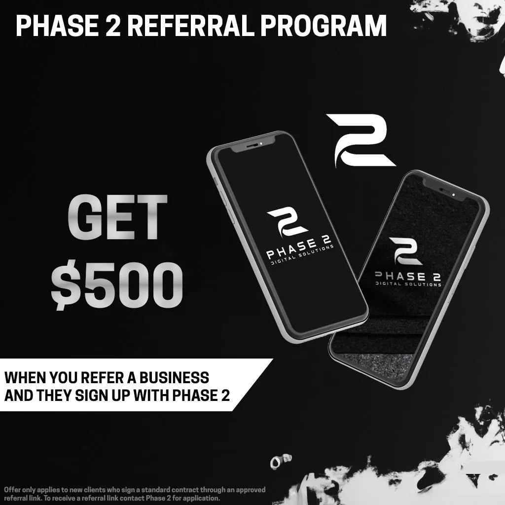 Fill out the form below to receive your personalized referral link. This link will lead to a page to book a discovery call. If a client books a call through your link and ends up signing a standard contract (1 or more months) with Phase 2, you will receive a $500 USD referral bonus!